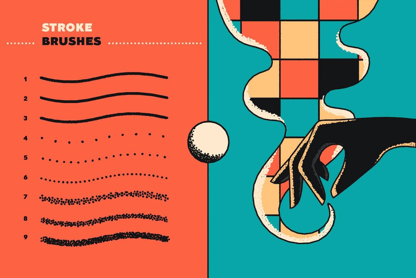 Procreate波纹笔刷包下载。欢迎大家使用这18个Procreate笔刷来画出你的第一幅插画作品,这些笔刷附带一些怀旧的效果。有9种笔刷类型,每一种都有两种风格:笔触笔刷和纹饰笔刷,都充满了复古的气息。使用这些画笔,你可以轻松为物体添加纹理和体积,并画出好看的光影。