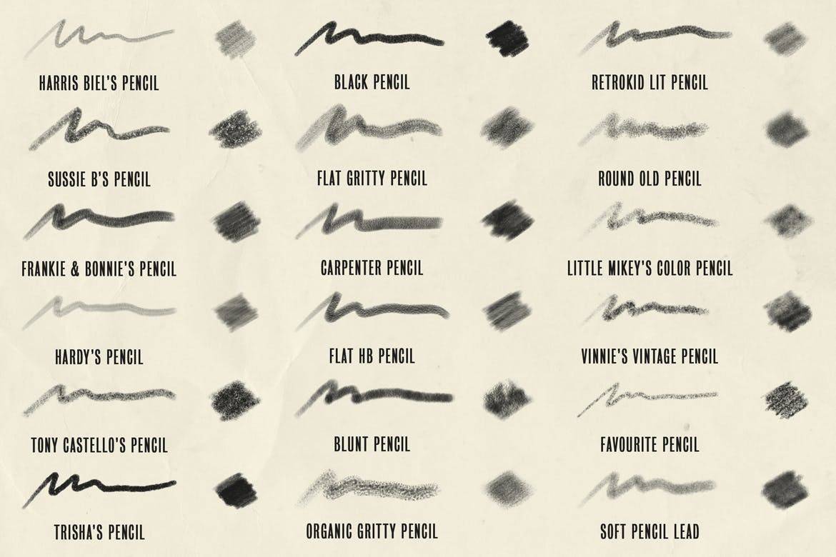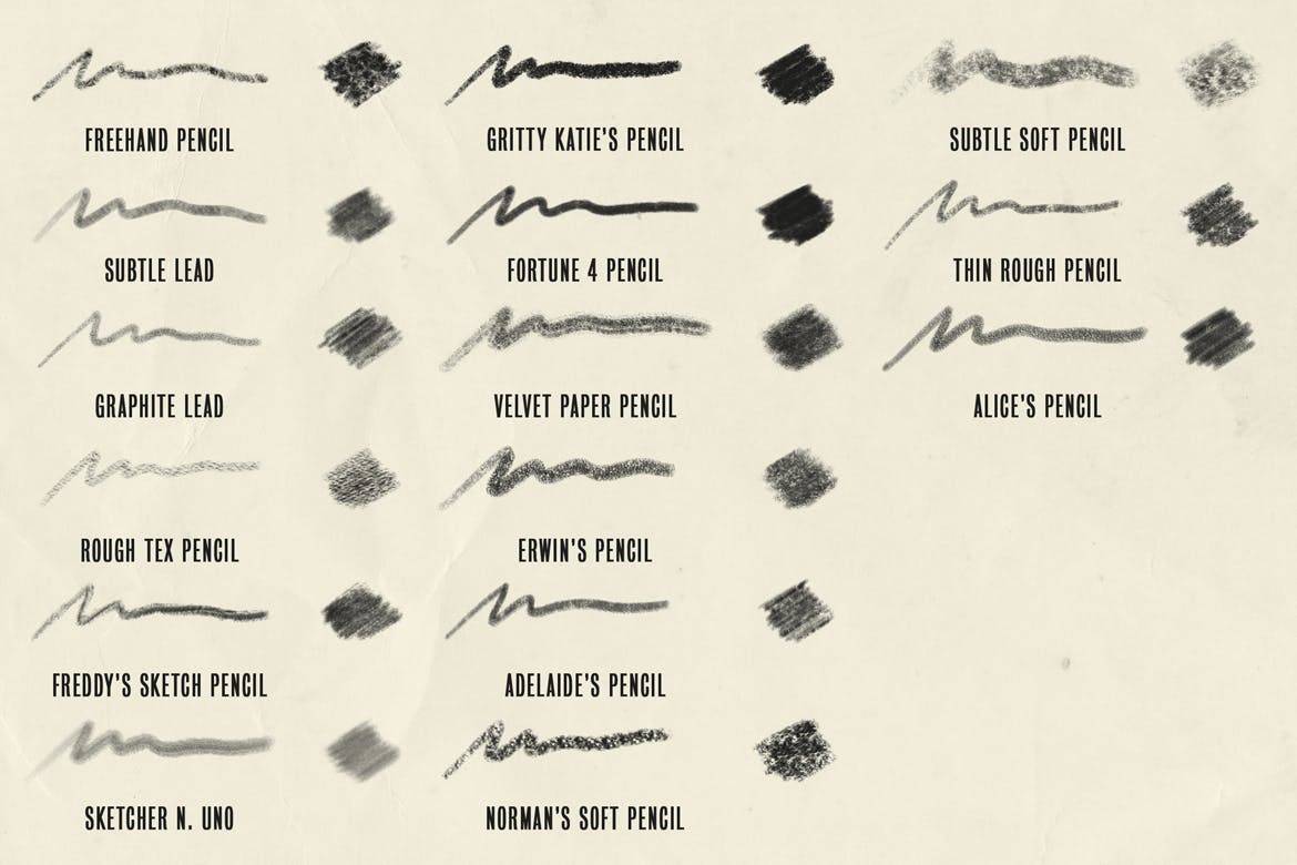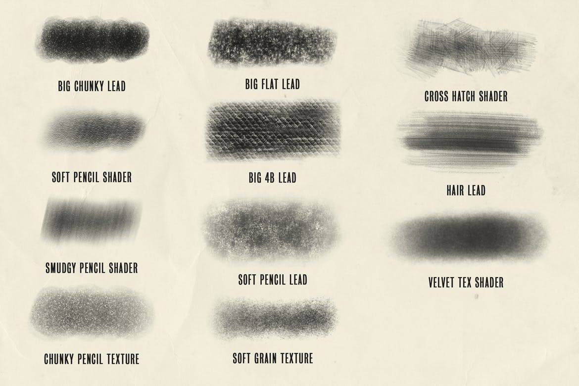 44个Procreate的漂亮铅笔笔刷下载,里面有33个不同的铅笔笔刷和11个动态铅笔着色器,还有7个额外的纸张纹理。