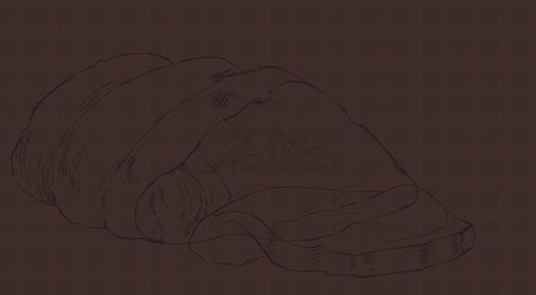 首先先画出线稿图,大致决定肉的纹理走向和剪影。