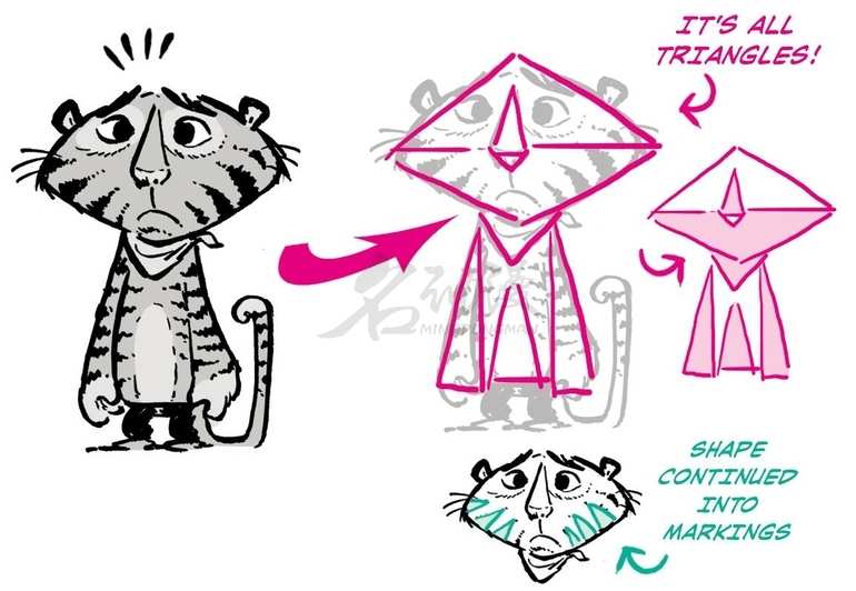 (2)还有这只小老虎,设计者从头到尾贯穿使用了大量的菱形结构。这样的角色就会给你感觉从头到尾都是一股“方”的气息。