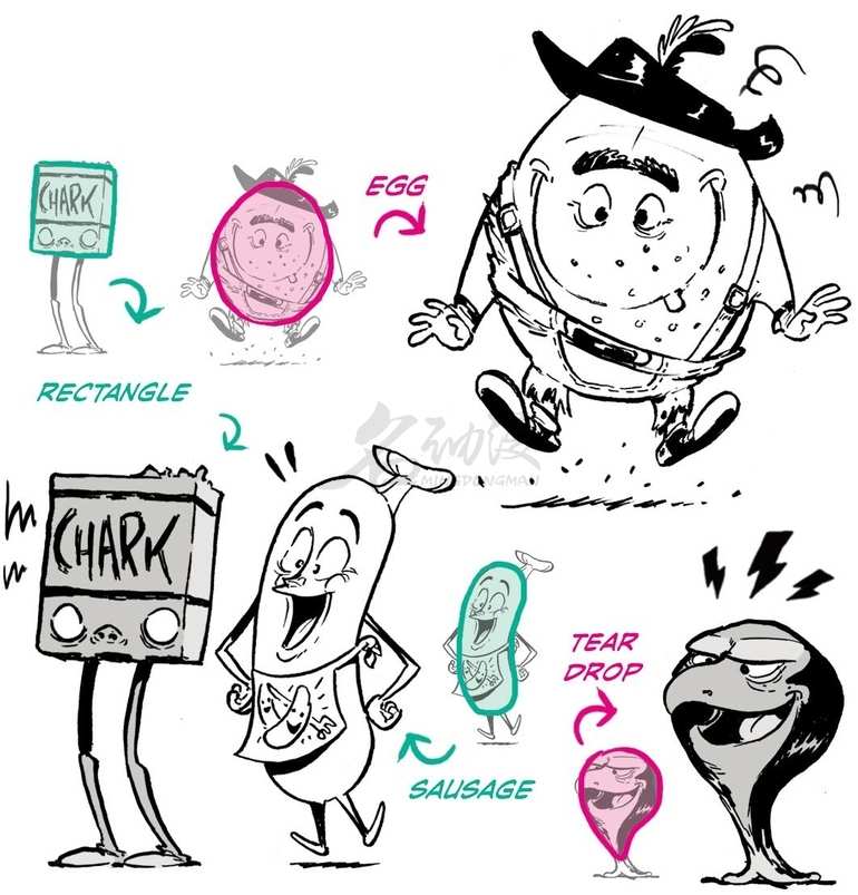 (1)比如下面这几个角色,我们可以很清晰地看出这些角色的形状,他们的形状并不复杂,甚至可以说很简单。但对于观众来说却是“个性十足”的。