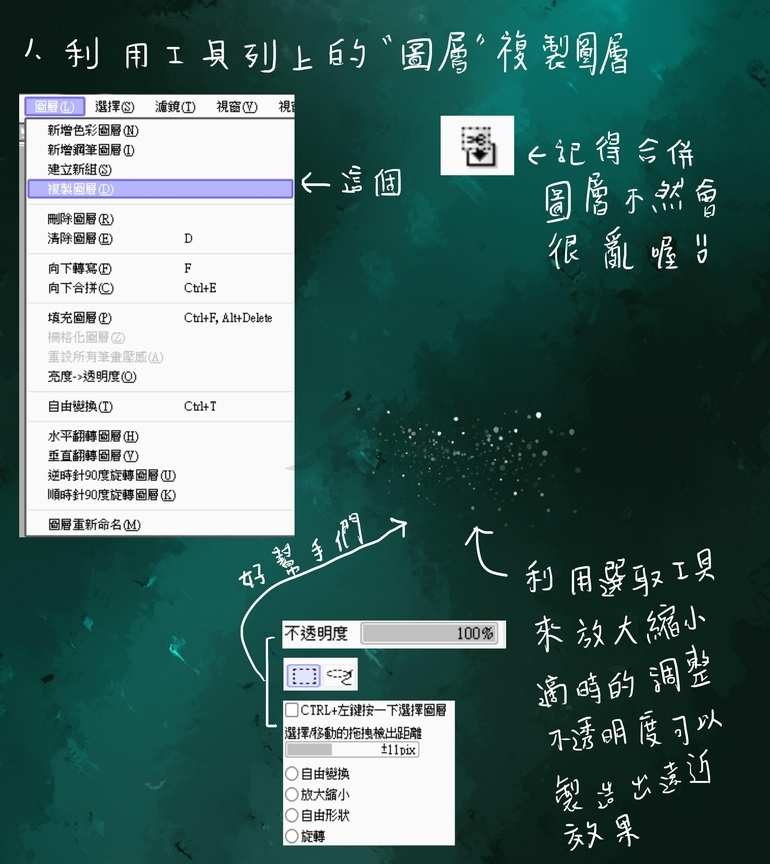 (1)注意星星的颗粒不要太分散,但也不能太集中。