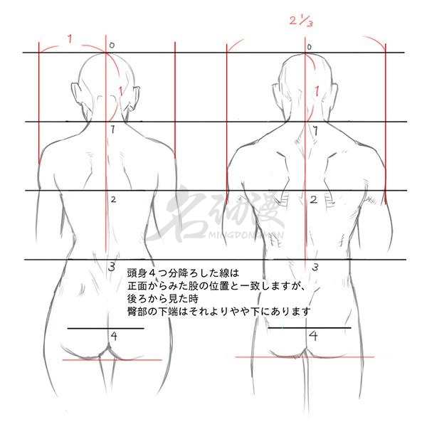 6、在掌握了大致的区别以后,我们就可以开始动笔,画出各种各样的背部姿势啦。