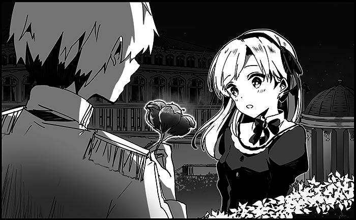 E.F:建筑物和天空的背景效果肯定不能太显眼,要压得很暗。同时建筑物的透视也要遵循透视效果,和女孩和男青年的视线也要对得上。