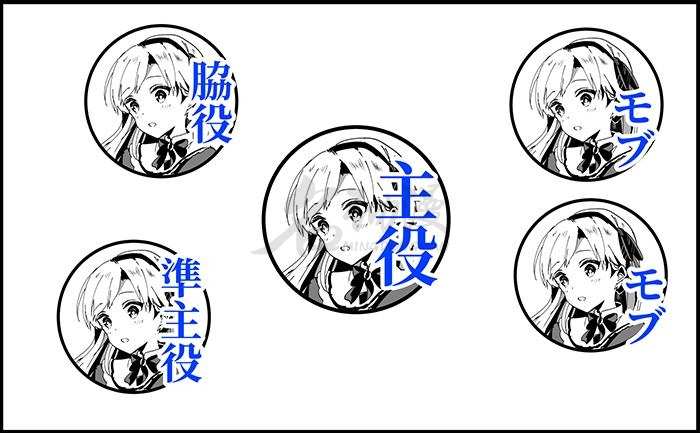 2.根据重要性的不同,我们会给他们安排不同的位置。根据其重要性从高到低依次为主角.准主角.配角.路人。