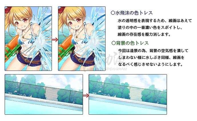 (3)水花和背景的线稿甚至可以变淡很多。