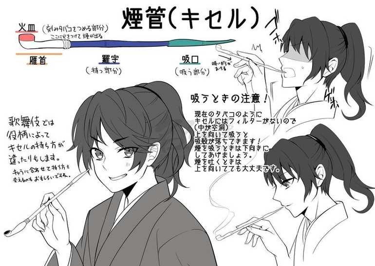 比如最常见的有烟管和扇子,这两种东西都是非常富有时代含义的物品。而且即便是在当下也很容易找到对应的素材。