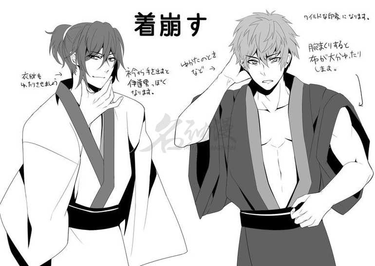 根据人物的性别不同,和服的穿着方式也是大不相同的。腰带和领子部位是重灾区,尤其是脖子后面的部分更是很多同学都画不好的地方。