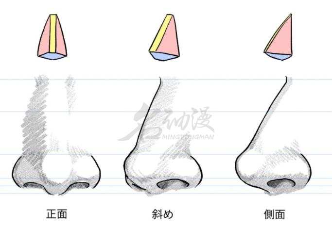 鼻子都是通过简化鼻子的实际形状中的特征部分来绘制的。