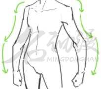 在画手臂摆动时,可以先用线条画一个简单的骨骼来辅助,然后再画手臂。这里要注意在画手臂摆动时,要保持着手臂一比一的比例,且要注意手臂的肌肉轮廓感。