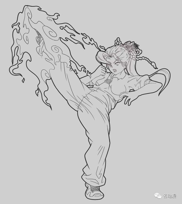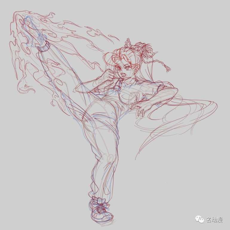 然后在照片动态的基础上,进行觉得好看又合理的夸张化,描绘出基本的火柴人动态走势: