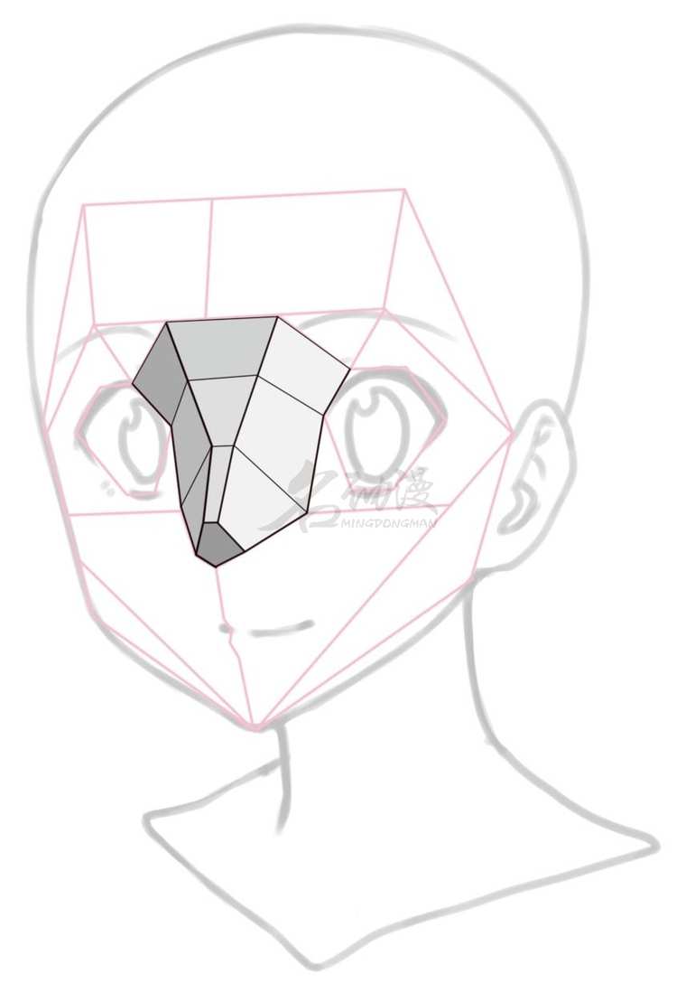 当然在很多二次元人物中的鼻子,还可以更简化为三个块面。