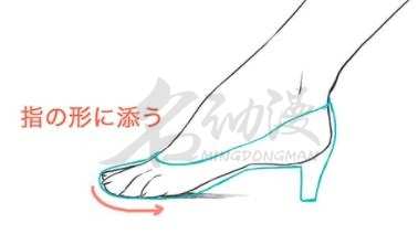 画浅口鞋(如图示)这类经常能够表现脚部线条,外观和自然度会随着能把握脚的形状而变化。