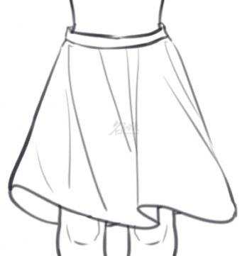 第三步:接下来刻画出裙裙子飘动时的褶皱,因为受到重力作用下,从腰部裙口沿着下去群里,画出现线条,裙摆幅度大部分的线就要长一些,而幅度较小部分的小要短一些。特别注意要是加太多的皱纹,裙子就会看起来像一块很薄的布。如图所示: