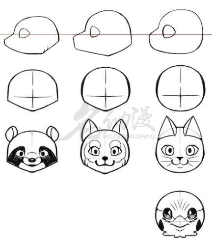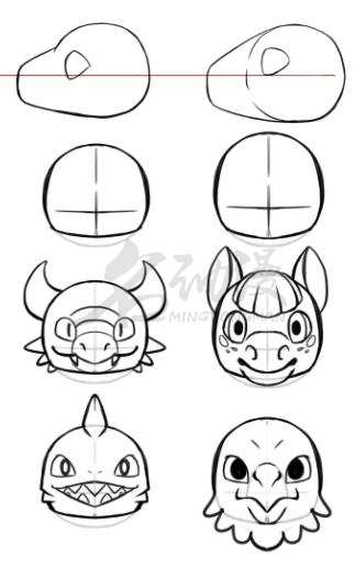 第三种:圆脸(图右边)这种适合猫或一些鸟类,脸颊两侧比较圆润。这种脸多数是用来绘制可爱的兽人角色。