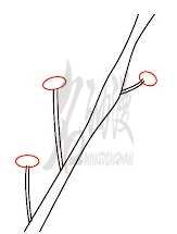 第二步:在每个茎上画圆形,作为樱花的中心。这些圆形更好的帮助我们画花瓣。如图所示: