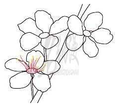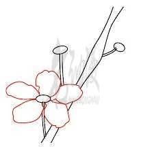第一步:首先画出樱花的树枝轮廓和樱花的花茎(红线)。如图所示: