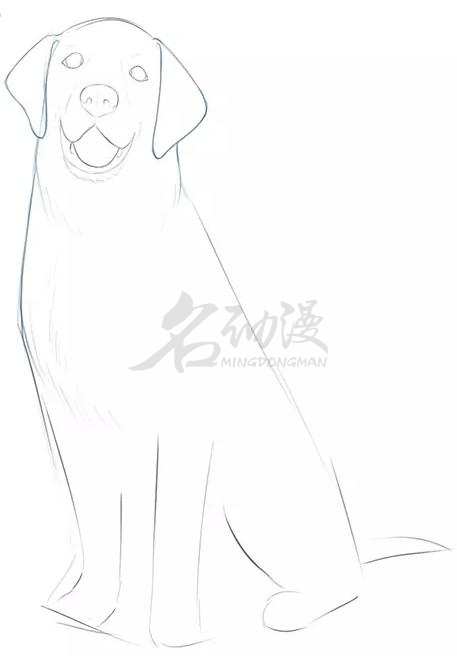 最后一步:深入刻画细节,例如狗的眼睛、狗的腹部阴影处等,再用橡皮擦,擦去辅助线后,其涂上喜欢的颜色就完成啦。如图所示: