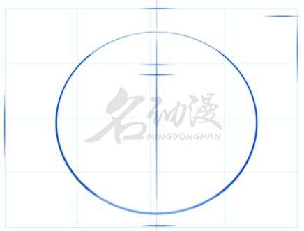 第一点:首先,画个12宫格的图框,有了这个图框更好的了解茶壶的结构。确定好茶壶的宽度和高度,画一条中心线,这条可以不对着图框里的中心线。选择椭圆选框工具,为茶壶的身体画一个椭圆形。再用短线定好手茶壶的柄和壶嘴的位置,在中心线整个五分之一处刻画出茶壶颈的厚度位置。如图所示: