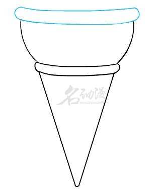 第三步:在刚刚曲线的头尾分别再画两条向上的曲线,且也在顶部画出两条曲线,并且将两条曲线的头尾都用小曲线连接。这样一个冰激凌筒就完成啦。如图所示: