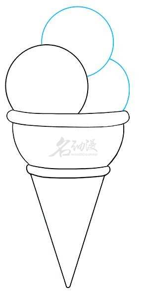 第四步:使用椭圆工具,按住shift键画出三个正圆,因为遮挡关系第一个圆底部是隐藏在冰激凌筒里的,第二个圆被第一个圆遮挡着,第三个圆被遮挡着漏出的部分不完整。所以要将多余的线条使用橡皮工具擦除掉。如图所示: