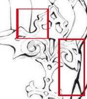 下图的线稿一条道走到黑,无节奏、无变化、无卡点、无层级、无虚实、断断续续。