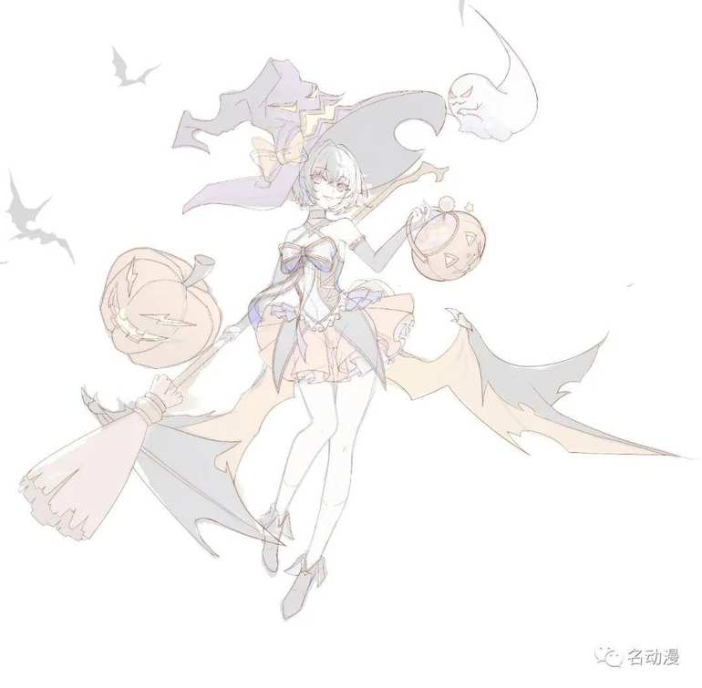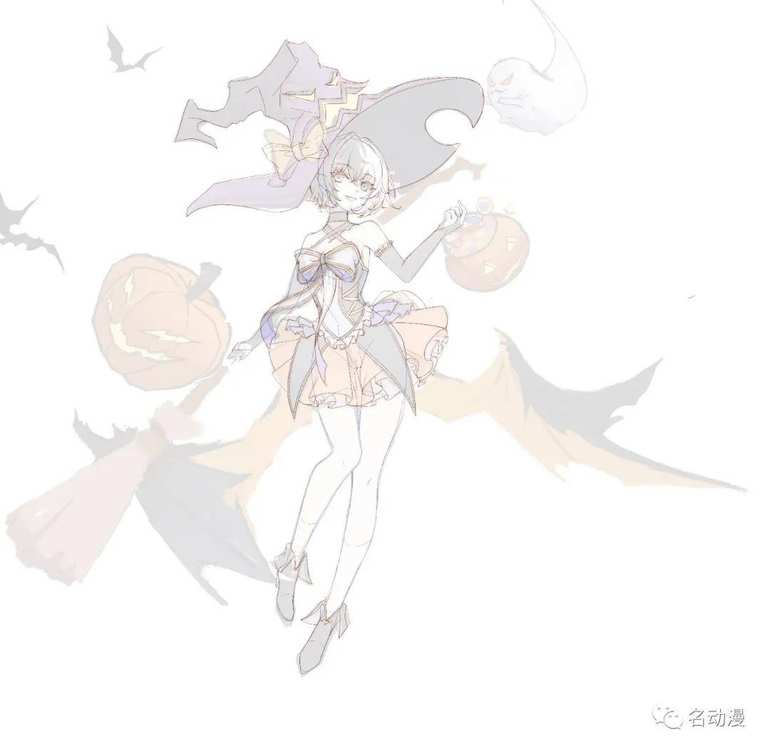好了,上回我们那张女巫的人设,已经处理完了配色,接下来就是细化具体的结构了。