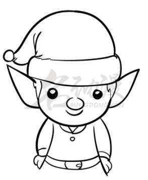 第一步:首先想到圣诞精灵的话,就会想到两个特征:精灵尖尖的耳朵和小帽子。开始先绘制精灵圆圆脸部的轮廓,接着在脸部两侧绘制尖尖的精灵耳朵。如图所示: