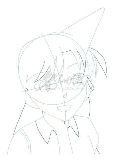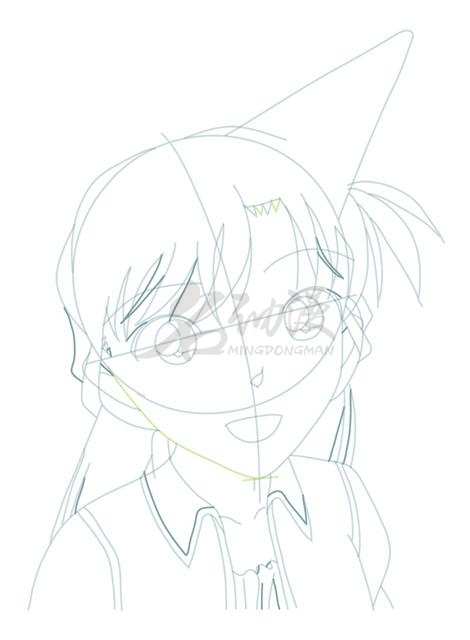 第二步:增加细节,将小兰的刘海、衣领以及披散下来的头发概括出来,然后画上眼睛、瞳孔等。