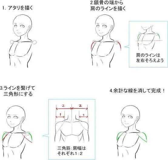 【锁骨和肩膀的联系】在画手臂抬起的角色时,对肩膀有不协调感的人,可能是锁骨的位置。