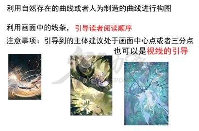 1.曲线构图,抽象构成画面中的曲线元素穿插或贯穿了整个画面的主要内容,或者画面的主要内容上的一个一个的点用曲线的方式进行连接布置。也被称为“引导线性构图”。