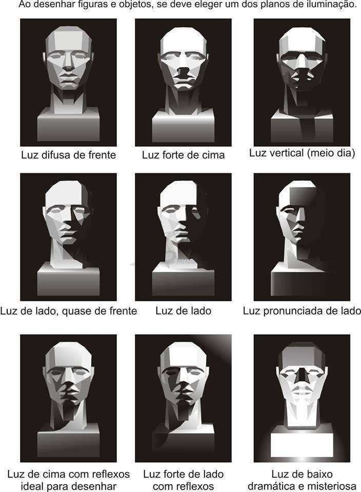 不同方向的光,产生的情绪也不同,立绘一般以正上方靠左或右。如下图所示: