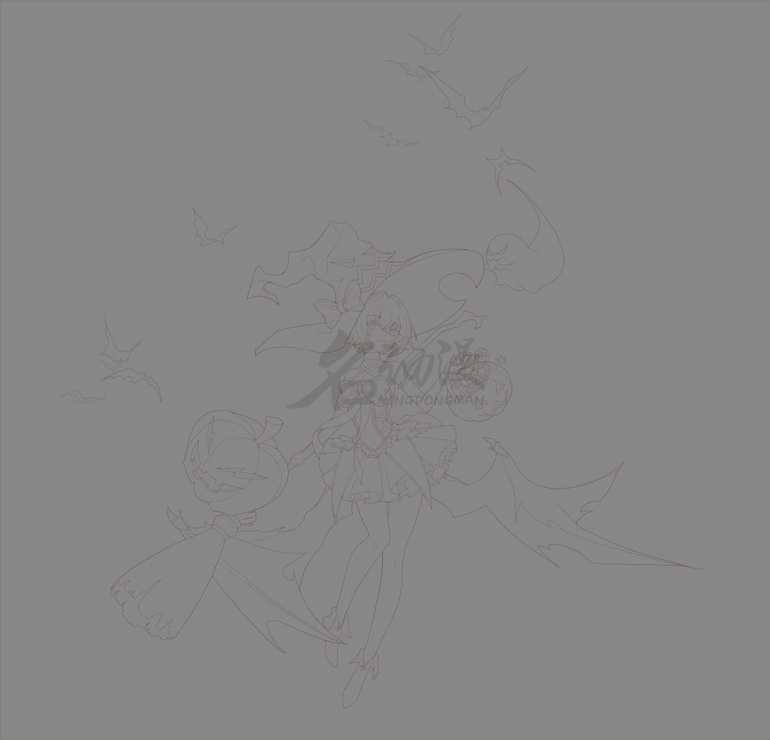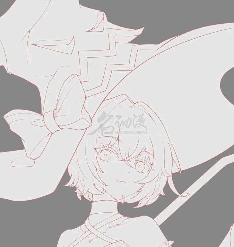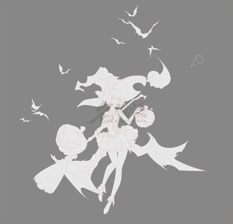 1.线稿调色:根据主色调来选择线稿颜色。例如下图,女巫的主色调为橙色,那么线稿的颜色可以调成偏暖色调的颜色。
