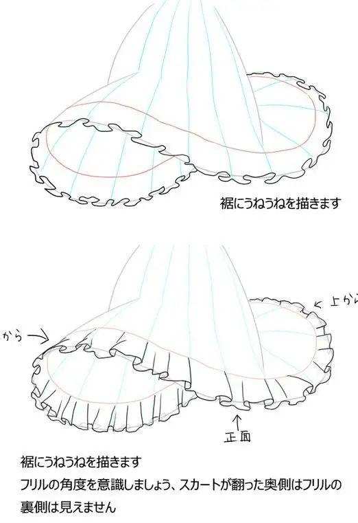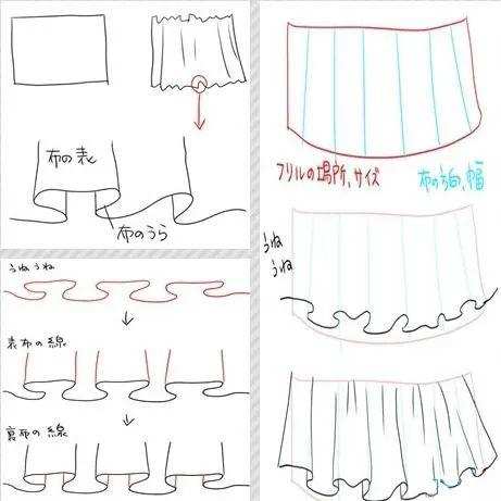 在画动漫人物衣服的时候,画裙子也是很多初学者的盲点,小编也给大家聊一下画裙子的方法。裙子主要还是褶子的问题,我们通过下面几张图去了解下: