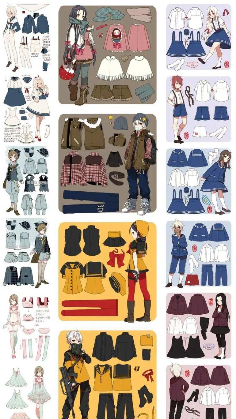 下面给大家展示一些动漫人物的服装搭配图: