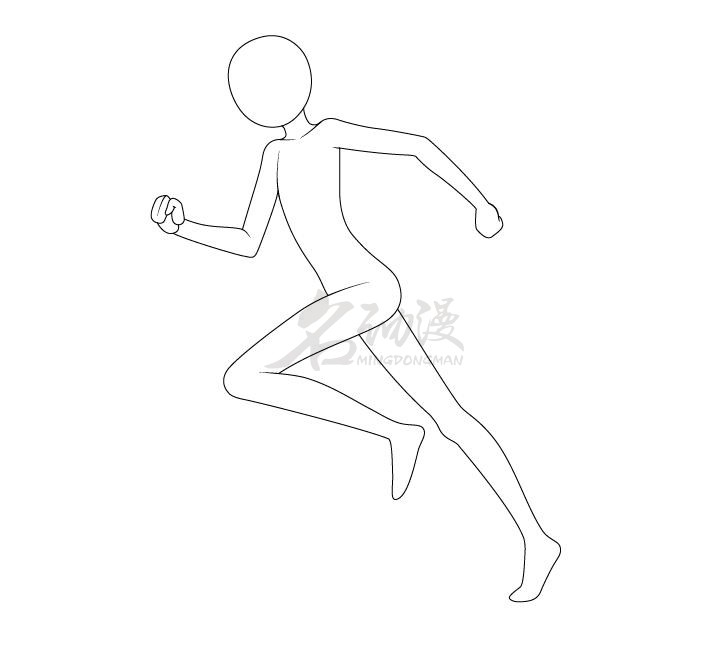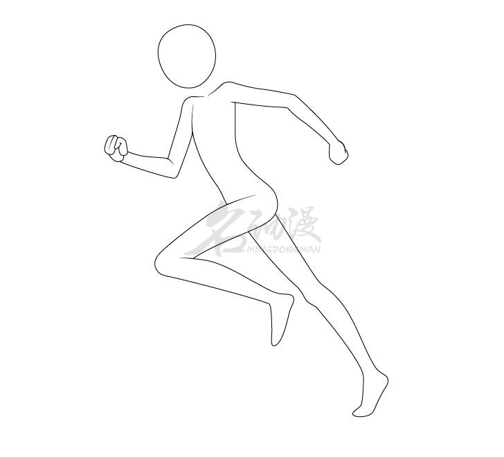 第一步:人物在奔跑时,躯干是略微前倾的。如图所示: