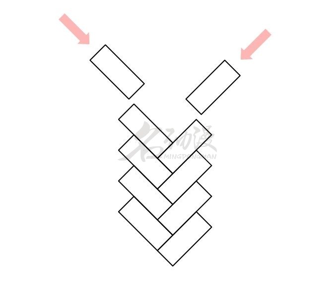 虽然辫子的形状看起来很简单,但实际上可能会让人有点困惑。其实啊可以将辫子的形状看为一种“砖堆”方法,左右斜着堆积,如图所示。
