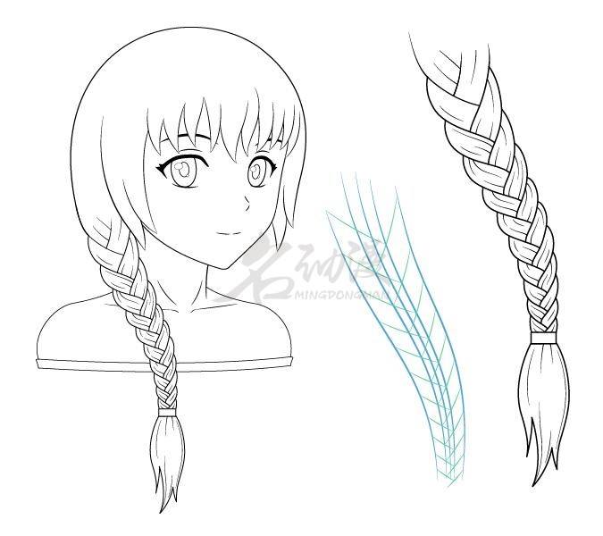 2.画麻花辫技巧:画自然的垂直麻花辫
