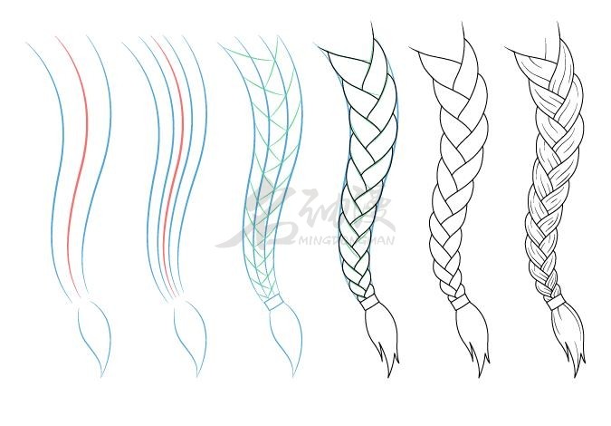 3.画麻花辫技巧:画会弯曲的麻花辫