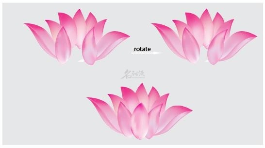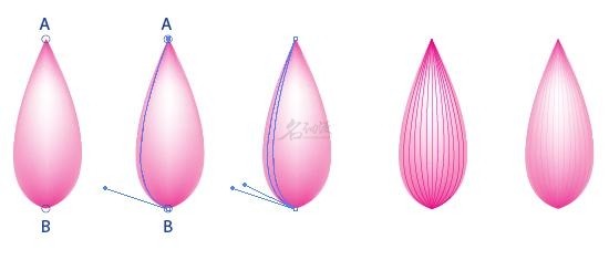 第五:将添加莲花花瓣的脉络。使用钢笔工具(填充为无,描边颜色为#EC008C,描边大小为 0.5 pt)绘制一条从 A 到 B 的曲线,如步骤 1 所示。继续执行相同的步骤,应该有完成时覆盖莲花花瓣的静脉。接下来选择所有的静脉并将不透明度设置为 10%-15%。最后的结果将类似于下面最终图像中显示的结果。如图所示: