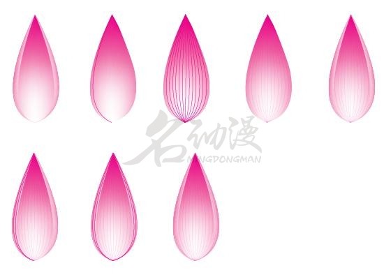 按照上图的这些步骤,需要画很多不同形状的花瓣。如图所示: