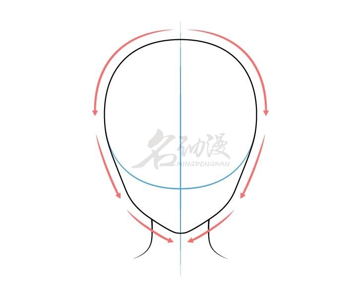 要点一:动漫人物通常有相当圆的脸。动漫脸的底部通常用两组主要线条绘制,一组从头顶向下延伸到嘴巴周围,另一组从那里延伸到下巴。下巴本身往往被画得完全尖尖或带有微小的曲线。如图所示: