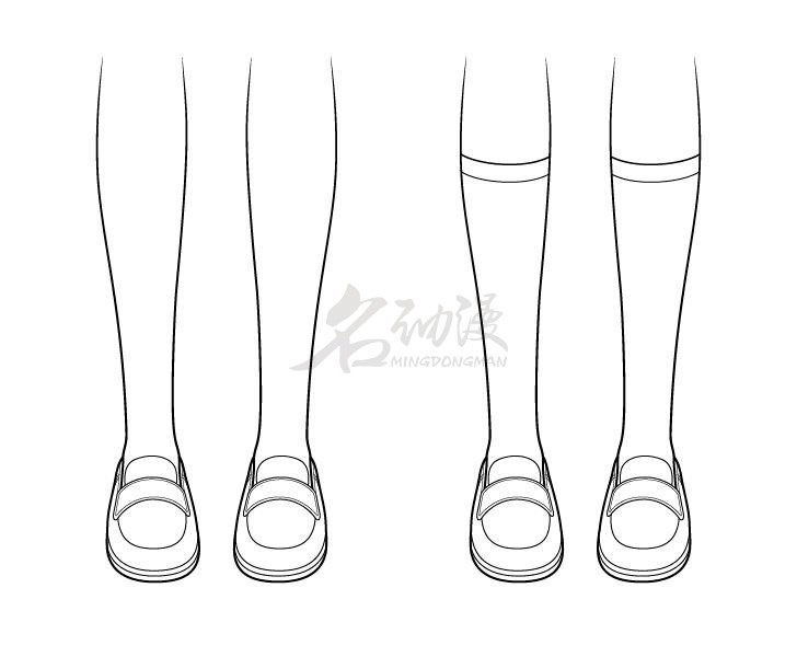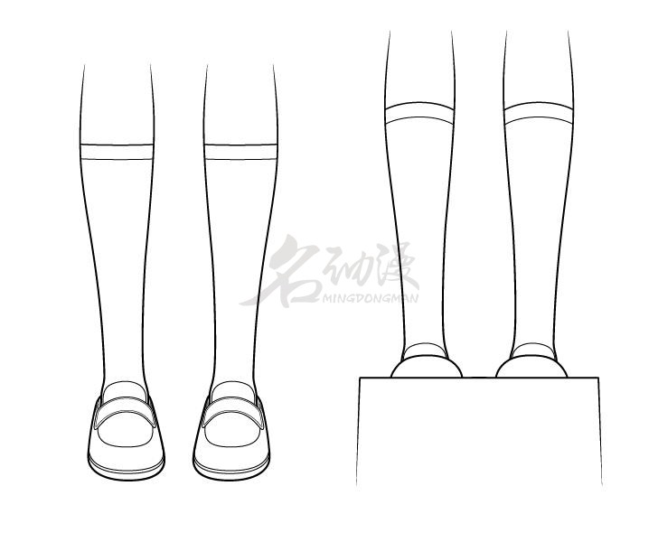 要点一:一般来说,在腿上展示袜子,几乎只有膝盖以下的一对曲线。还可以在该曲线下方添加第二条曲线(如果可能,使用稍微浅一点的线)以显示袜口。如图所示: