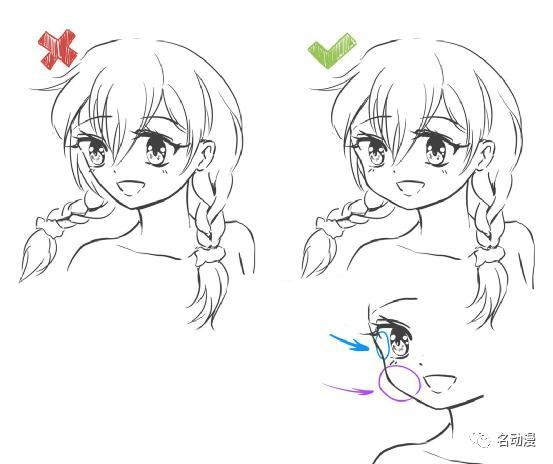 切记,在二次元中的人物侧脸中,鼻子的根部,一定要比下巴更靠前,这样,人物的侧脸才不会有向前鼓的“地包天”感。