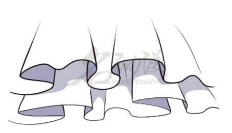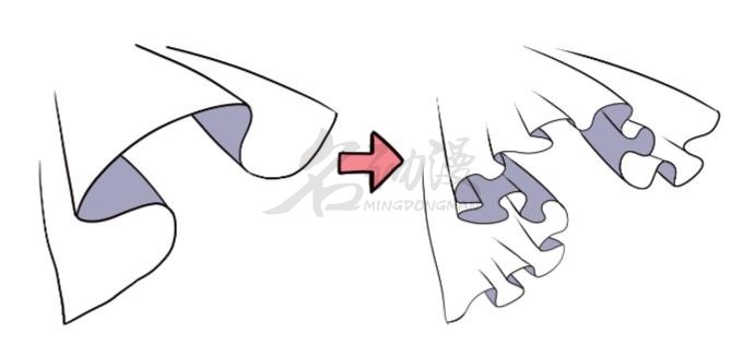 第四步:除了上一步说到的情况以外,我们还可以画多层褶皱,运用到公主裙或者洛丽塔服装上就可以获得华丽和体积感。显然,通过增加褶皱的方法,很容易达到给人一种视觉上的重量感。