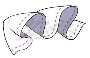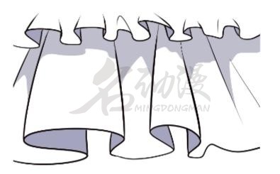 第一步:首先,我认为褶皱最好是自己想想一个形状,然后将这一块布绑起来,下图所示右边的布块被箭头部分绑住了,二由红色虚线包围起来的部分通常被称之为褶皱。而在一些漫画或动画中你通常看到的褶皱都是和图二这样的,它们有一定的起伏且是连续的状态。