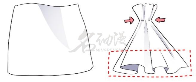 第三步:除了在褶皱上增加各种各样的花纹设计之外,我们还可以在褶皱上再画出更多的褶皱,比如主角身穿晚礼服,我们就可以将褶皱的层数画多一点,并“粘贴”到晚礼服的裙摆上。