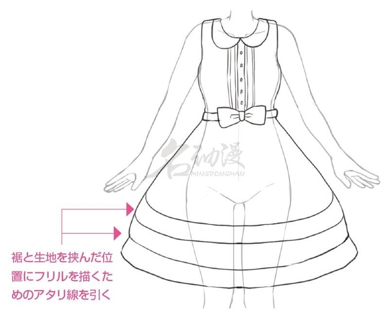 第六步:最后画一些小小装饰物,丰富裙子细节。这样好看的连衣裙就画好啦。