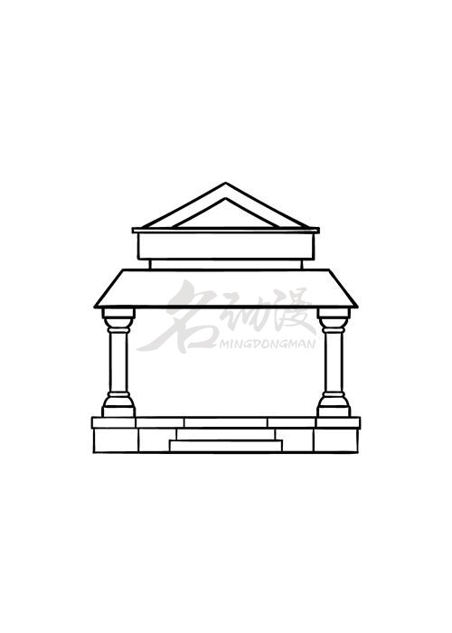 第二次:我们接着第一步画出房子的屋檐以及承重柱,为了造型更加丰富,我们的承重柱可以采用方圆结合的样式来塑造。