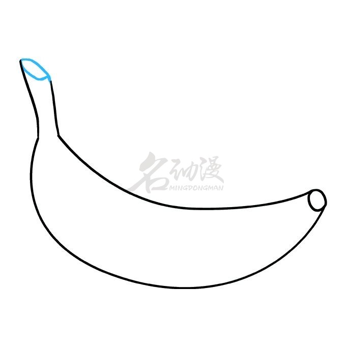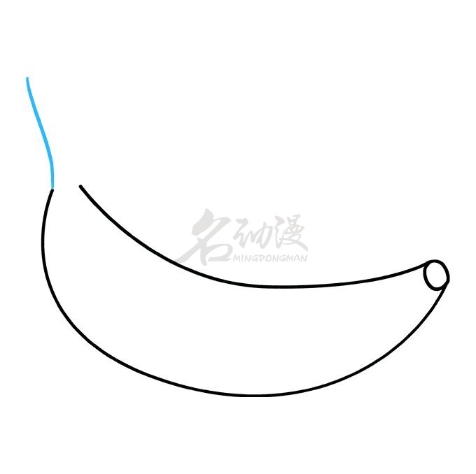 第三步:和上一个步骤所说的一样,先画出香蕉蒂,然后开始画蕉柄。
